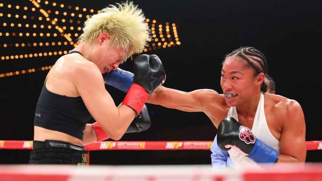En el cuarto asalto conectó varios uppercuts limpios a la cabeza de Shin, poniendo al público de pie ante lo que en un primer momento pareció un derribo, aunque la árbitro Sparkle Lee no lo validó.